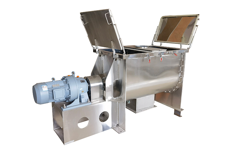 WLD-系列臥式螺帶混合機由U形容器、螺帶攪拌葉片和傳動部件組成;螺帶狀葉片一般做成雙層或三層,外層螺帶將物料從兩側(cè)向中央?yún)R集,內(nèi)層螺帶將物料從中央向兩側(cè)輸送,形成對流混合。該系列機對于粘性或有凝聚性的粉粒體的混合以及粉粒體中添加液體及糊狀物料的混合有良好的效果,筒蓋可做成全開式門,以便于對設(shè)備進行清洗,更換混合物料。